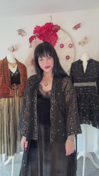 KIMONO MIT BESTICKUNGEN UND GOLDENEN PAILLETTEN - ONE SIZE -