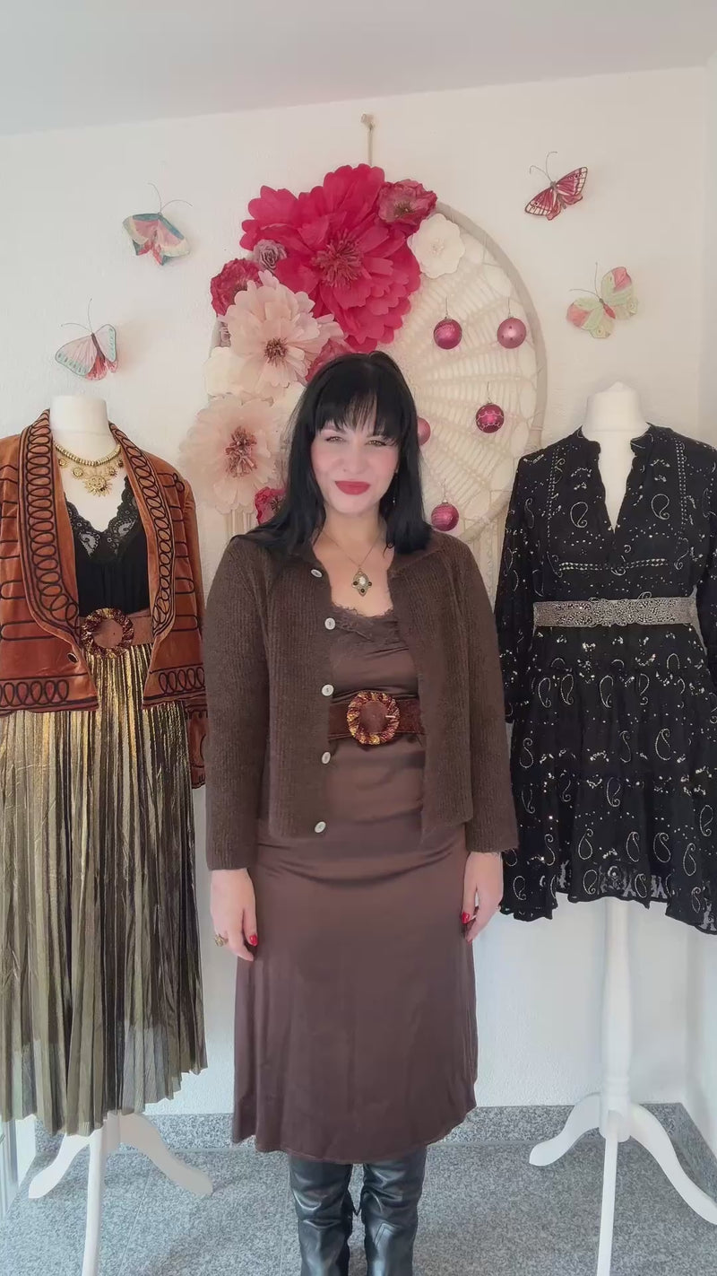 SATINIERTES SLIP-DRESS IN BRAUN - ONE SIZE -