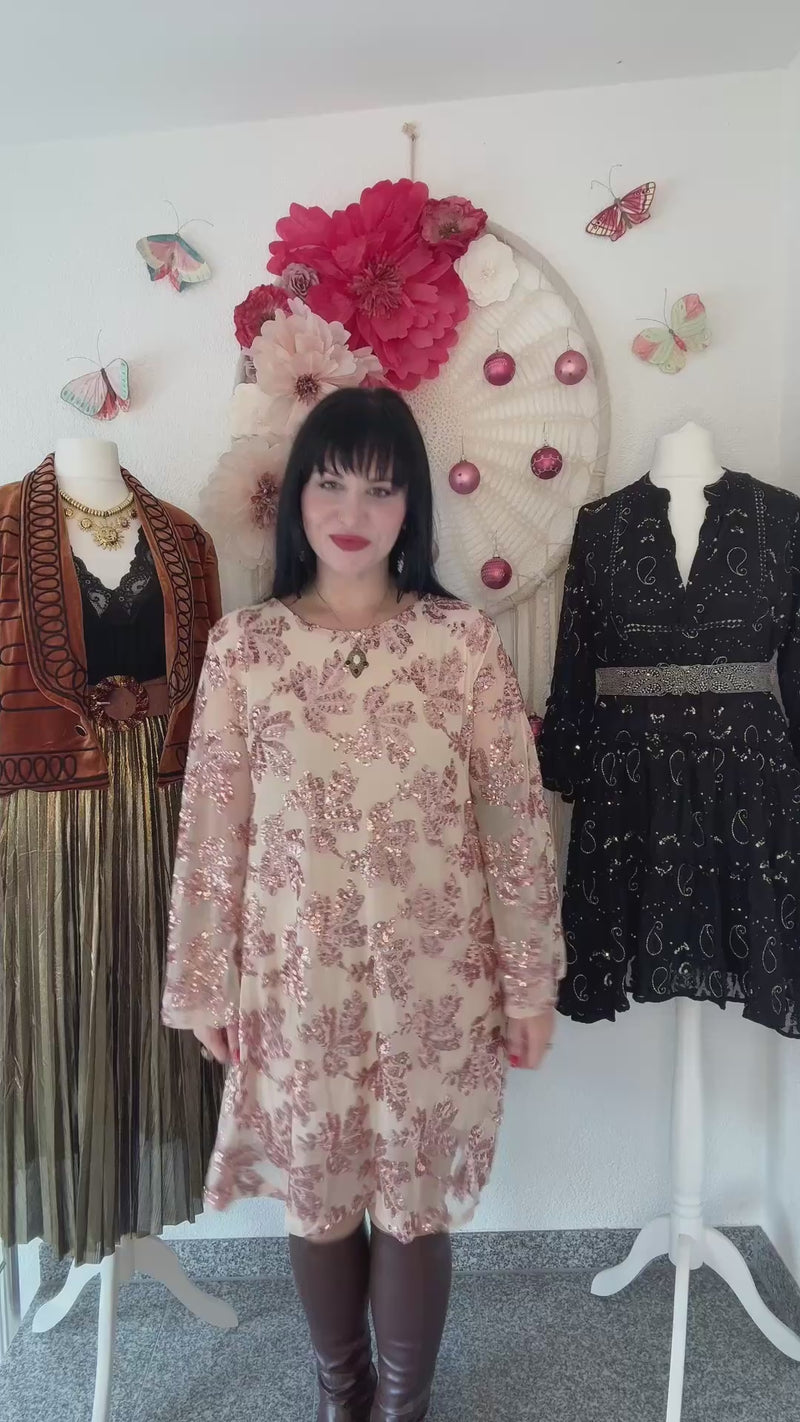 BEZAUBERNDES PAILLETTENKLEID MIT SCHLEIFE IN NUDE - ONE SIZE -