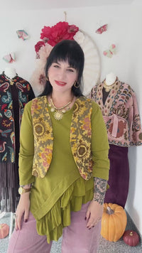 KURZE BOHOWESTE MIT STICKEREIEN IN SENFGELB - ONE SIZE -